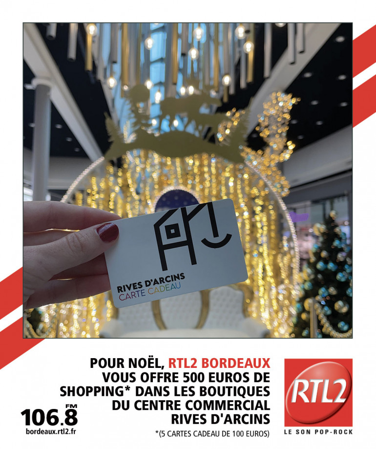 A quelques jours de Noël et dans l'urgence des cadeaux qui vont avec, toute cette semaine, RTL2 Bordeaux vous offre vos cartes cadeaux de 100€ par jour valable dans l'ensemble des boutiques du centre commercial Rives d'Arcins Bordeaux-Bègles !
