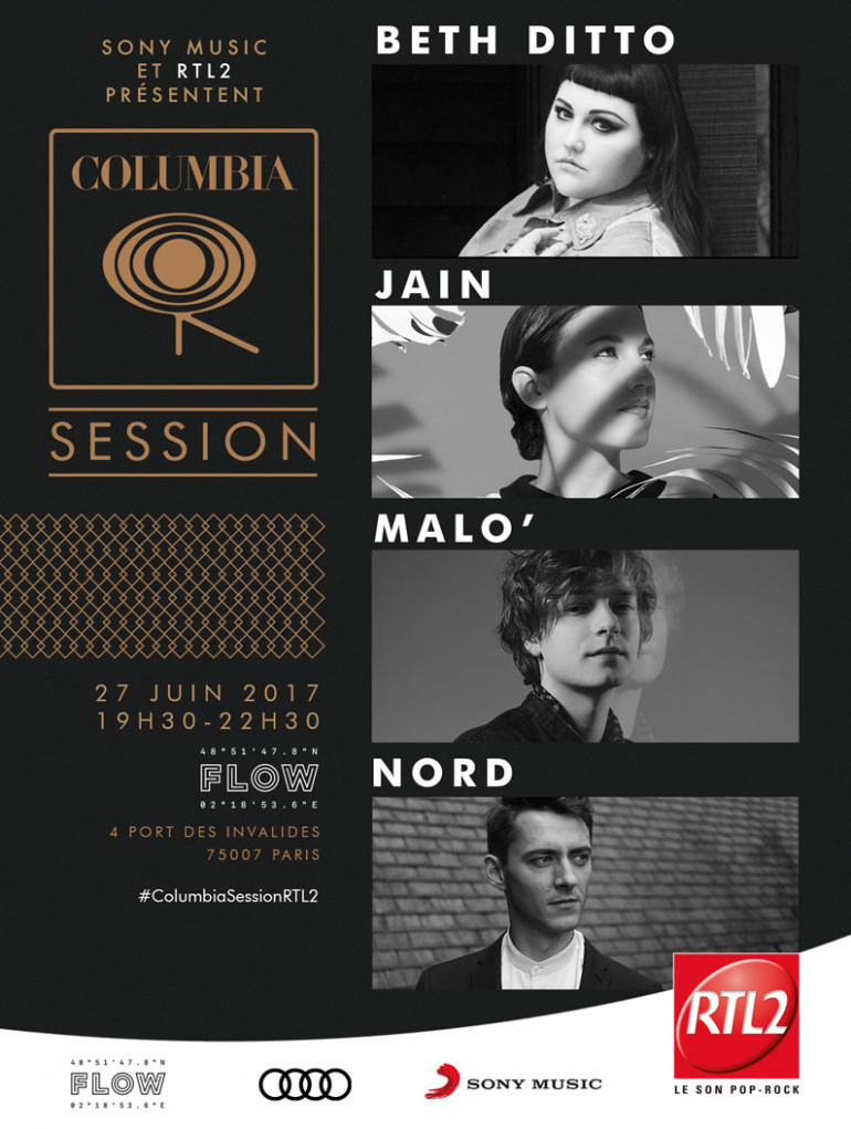 Columbia symbolise à lui seul de nombreuses pages de l’histoire de la musique contemporaine. Premier label de musique au monde, créé en 1888, Columbia compte dans ses rangs des artistes internationaux tels que AC/DC, David Bowie, Bob Dylan, Daft Punk ou encore Depeche Mode, sans oublier de très belles signatures en France comme Brigitte ou Julien Doré.Le principe des Columbia Session : proposer à une poignée de privilégiés une expérience musicale inoubliable au plus près des artistes qui font l’actualité du moment. La nouvelle édition, mardi 27 juin 2017, verra se succéder sur la scène du Flow à Paris : Beth Ditto, Jain, Malo' et Nord.