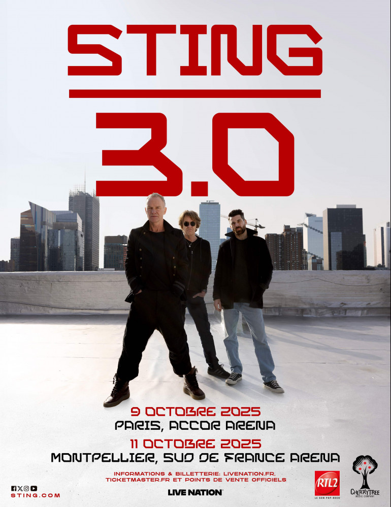 L'icône du rock et ancien leader du groupe The Police, s’apprête à faire son grand retour sur le sol français dans le cadre de sa tournée Sting 3.0. Présentée par Cherrytree Music Company et Live Nation, cette nouvelle série de concerts s’inscrit dans la continuité d’une tournée mondiale qui a déjà rencontré un vif succès en Amérique du Nord. Les fans français auront l’opportunité de le retrouver à l’Accor Arena de Paris le 9 octobre, puis à l’Arena Sud de France de Montpellier le 11 octobre.