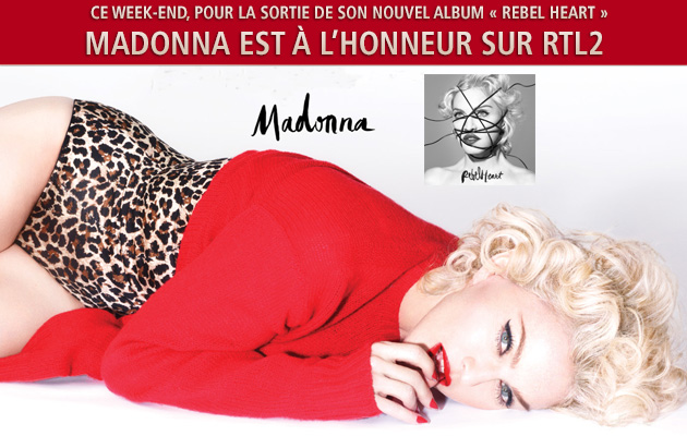 Tout ce week-end, dès que vous entendez un titre de Madonna, envoyez par SMS « RTL2 » au 74900 (0,50€/SMS + prix d’un SMS. Inscription au service en 2 SMS) et gagnez peut-être tous ses albums. Et dimanche soir à partir de minuit : Madonna en concert sur RTL2 le son Pop Rock.
