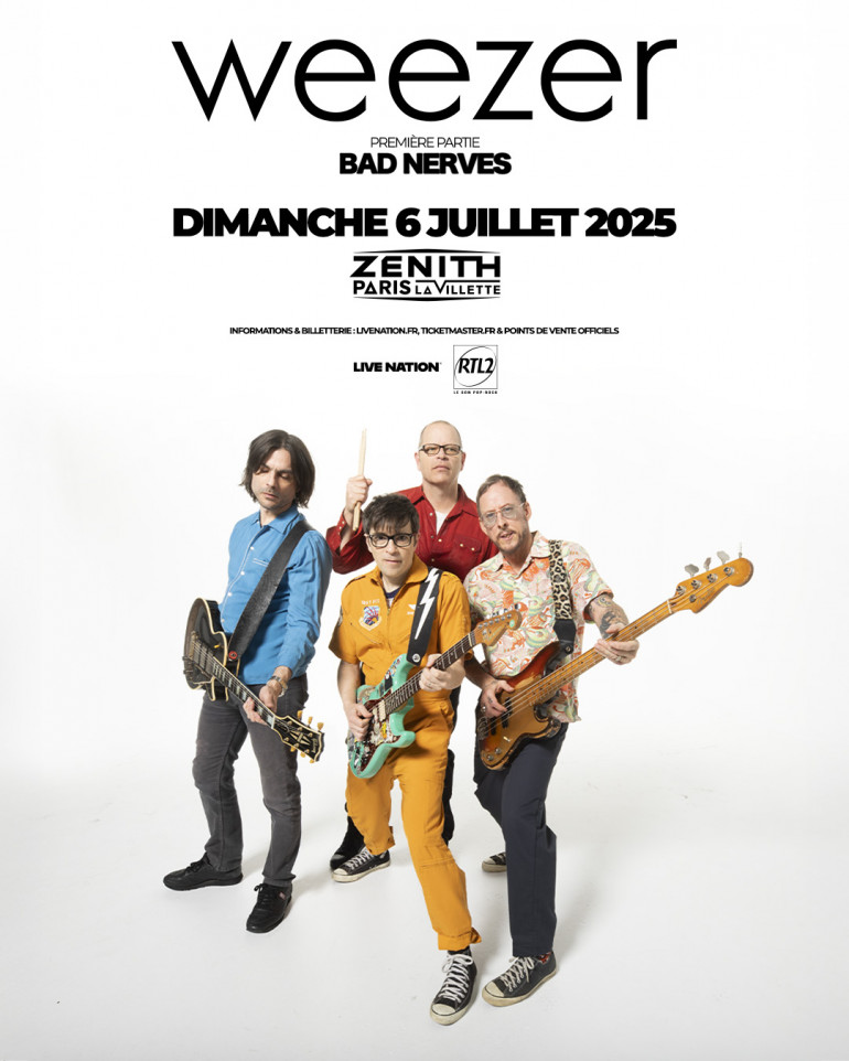 Après plus de 30 ans de carrière, Weezer s'apprête à enflammer la scène parisienne pour une soirée qui s'annonce mémorable. Formé en 1992 à Los Angeles, le groupe est composé de Rivers Cuomo (voix principale, guitare principale), Patrick Wilson (batterie), Brian Bell (guitare rythmique, chœurs, claviers) et Scott Shriner (basse, chœurs). Avec plus de 35 millions d'albums vendus dans le monde, leur influence sur la scène rock est indéniable.