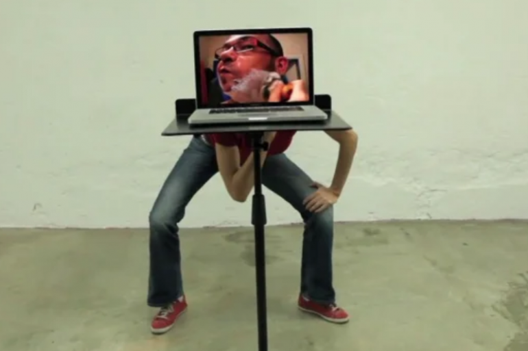Un écran d’ordinateur. Une vidéo amateur sur YouTube. Le banal. Oui mais Giuseppe Chico et Barbara Matijevic rôdent à proximité. Elle vient de la danse. Lui du théâtre et de la scénographie. La technologie change notre monde. Elle change aussi nos corps dans le monde. Et c’est à cet endroit que débute le monde de cette paire d’artistes, qui savent greffer leurs corps dans les images de YouTube.