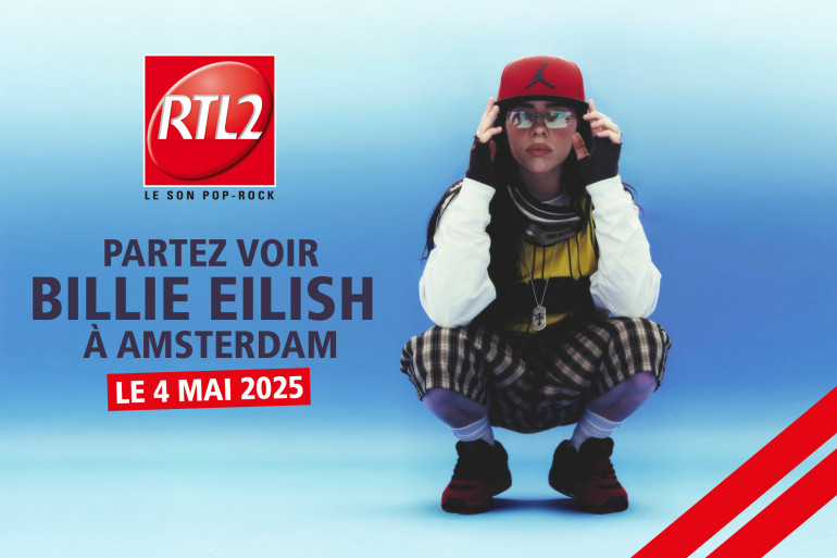 C’est simple ! Ecoutez RTL2. Dès que vous entendez deux titres de Billie Eilish à la suite, soyez les premiers à appeler au 3228 (0,50€/min) pour tenter de remporter vos invitations. RTL2 prend tout en charge : vos billets pour le concert du 4 mai 2025, votre transport et une nuit d’hôtel à Amsterdam.