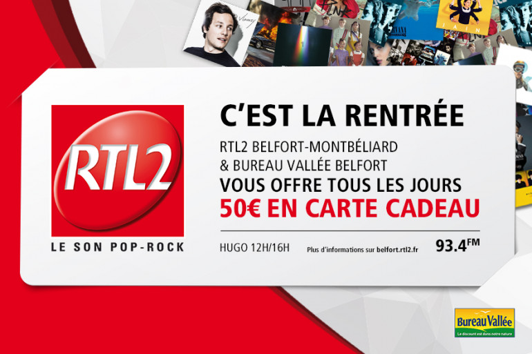 Cette semaine, RTL2 Belfort Montbéliard et Bureau Vallée Belfort vous offre chaque jour, une carte cadeau de 50 euros pour bien préparer la rentrée!!