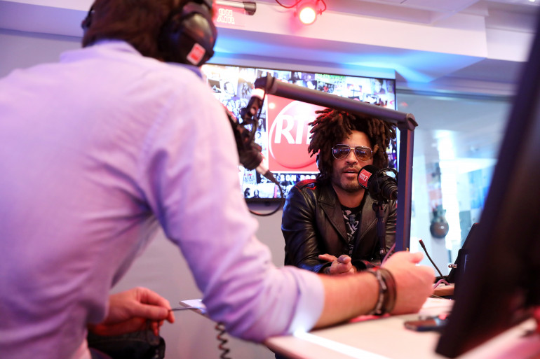 Lenny Kravitz en compagnie d'Eric Jean Jean dans les studios de RTL2