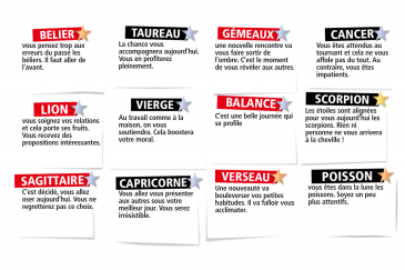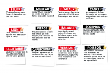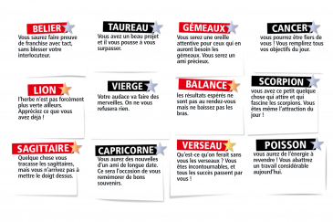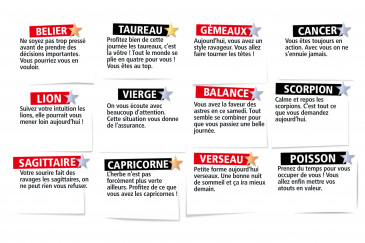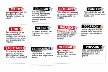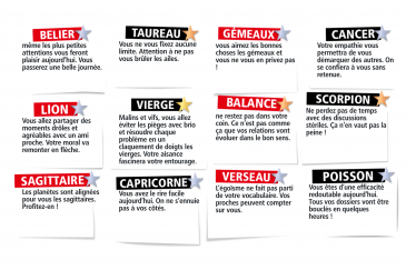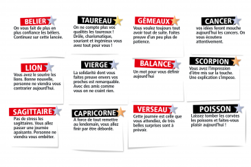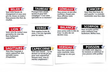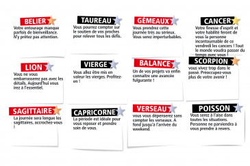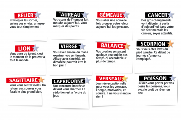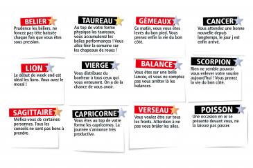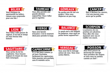 L'horoscope L'horoscope de l'Expresso du Week-End du dimanche 12 octobre 2025 Retrouvez chaque fin de semaine les prévisions de l'Expresso du week-end signe par signe publié le 12/10/2025 à 06:30