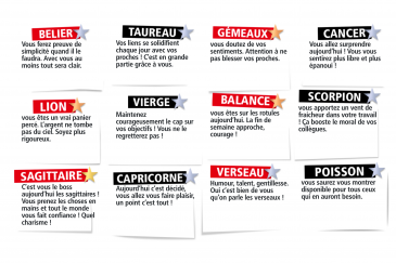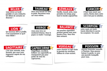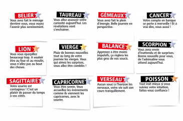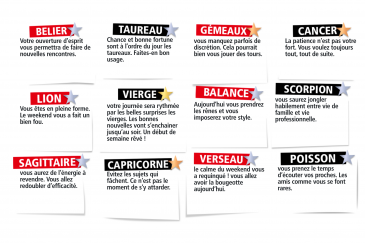 L'horoscope L'horoscope de l'Expresso du Week-End du dimanche 28 septembre 2025 Retrouvez chaque fin de semaine les prévisions de l'Expresso du week-end signe par signe publié le 28/09/2025 à 06:30