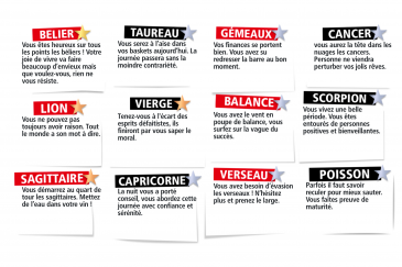 L'horoscope L'horoscope de l'Expresso du Week-End du dimanche 19 octobre 2025 Retrouvez chaque fin de semaine les prévisions de l'Expresso du week-end signe par signe publié le 19/10/2025 à 06:30