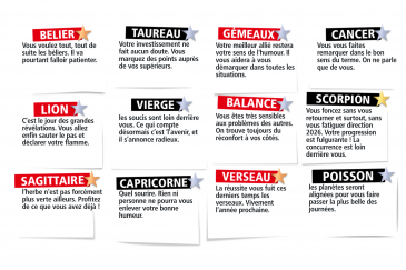 L'horoscope L'horoscope de l'Expresso du Week-End du samedi 20 décembre 2025 Retrouvez chaque fin de semaine les prévisions de l'Expresso du week-end signe par signe publié le 20/12/2025 à 06:30